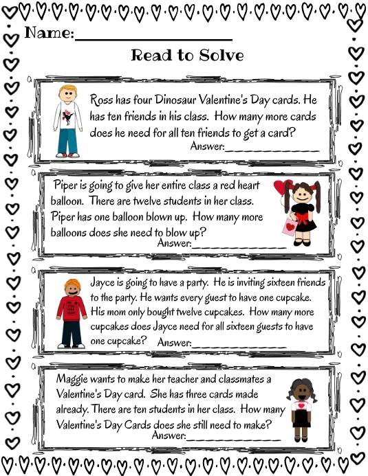 Read to Solve Valentine’s Math Word Problems Template | PosterMyWall